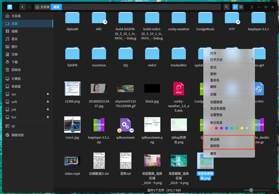 已知问题:桌面和文管都有这个菜单,实际文管不需要这个菜单。
