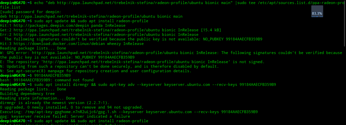 2.sudo apt-key adv --keyserver hkp://keyserver.ubuntu.com:80 --recv 99184AAECFB359B9