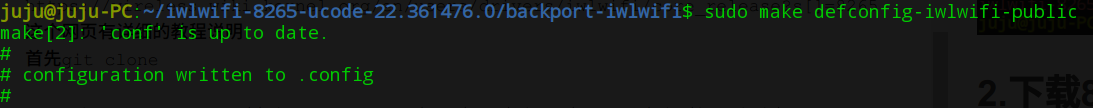 sudo make defconfig-iwlwifi-public然后关闭vendor commands功能(官网上讲这个功能有兼容性bug)