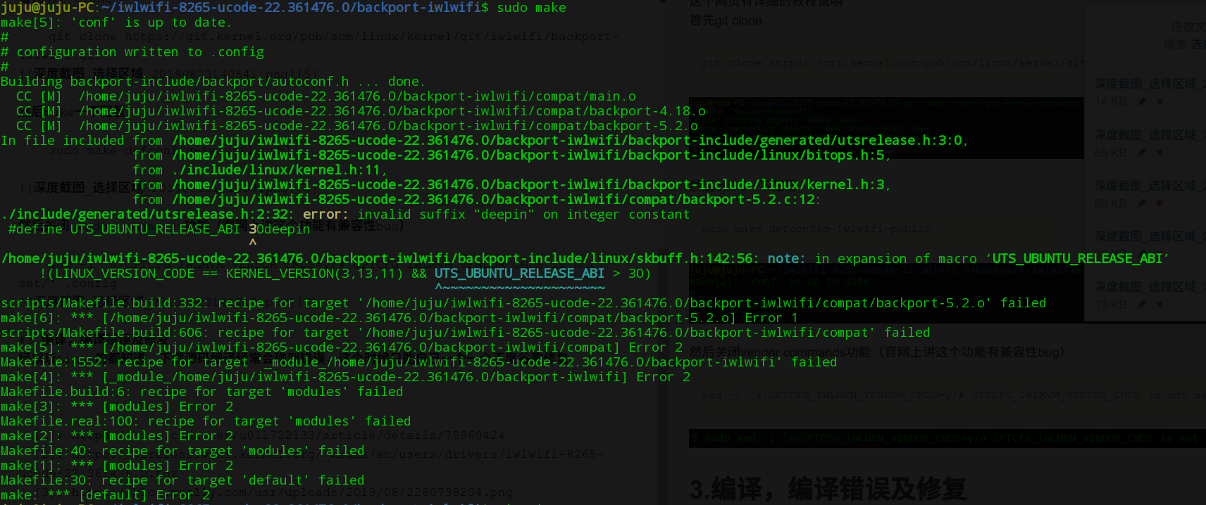 sed -i 's/CPTCFG_IWLMVM_VENDOR_CMDS=y/# CPTCFG_IWLMVM_VENDOR_CMDS is not set/' .config3.编译,编译错误及修复