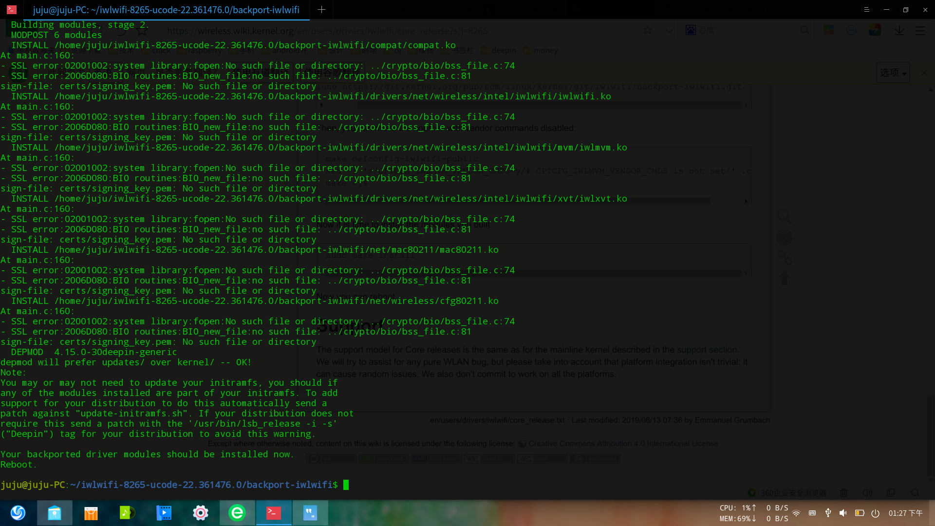 看到deepin论坛里有人自己编译重装了wifi驱动,我也试着编译安装了一下