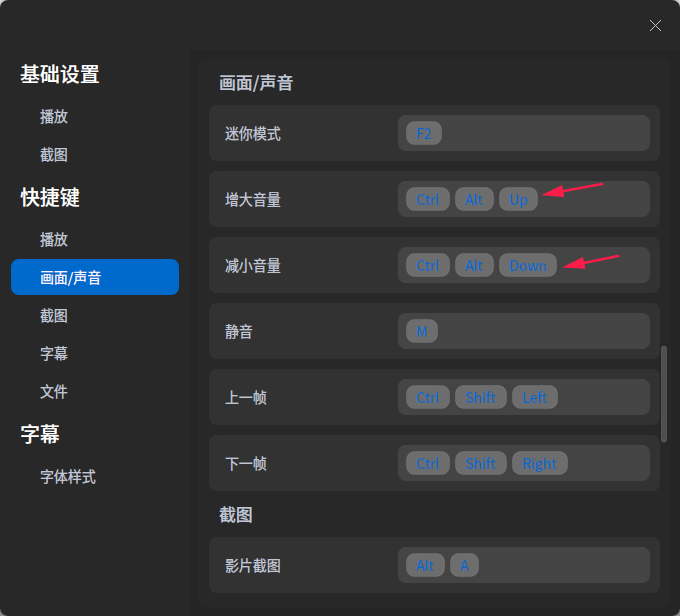 应用设置里面的快捷键字体颜色在深色模式下显示不明显,建议优化一下,详细请看截图,第一眼看上去太费劲了