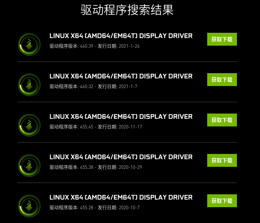 这里是搜索结果,选择你需要的显卡驱动: