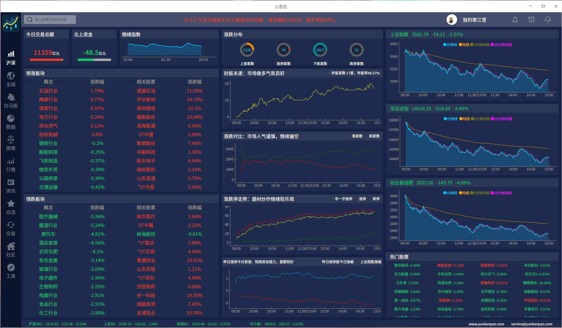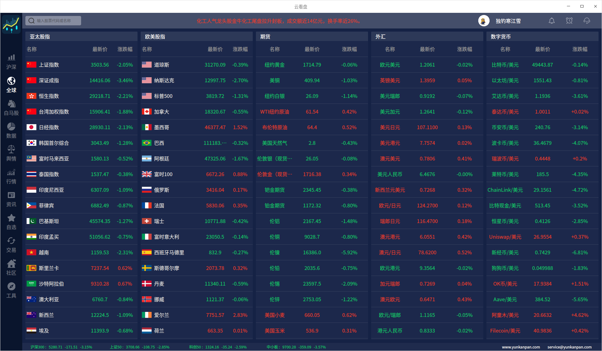 云看盘:已经适配完uos,deepin,centos等linux,功能齐全丰富,响应速度快。缺点是内存占用有点大,600M左右,后期还需要优化。