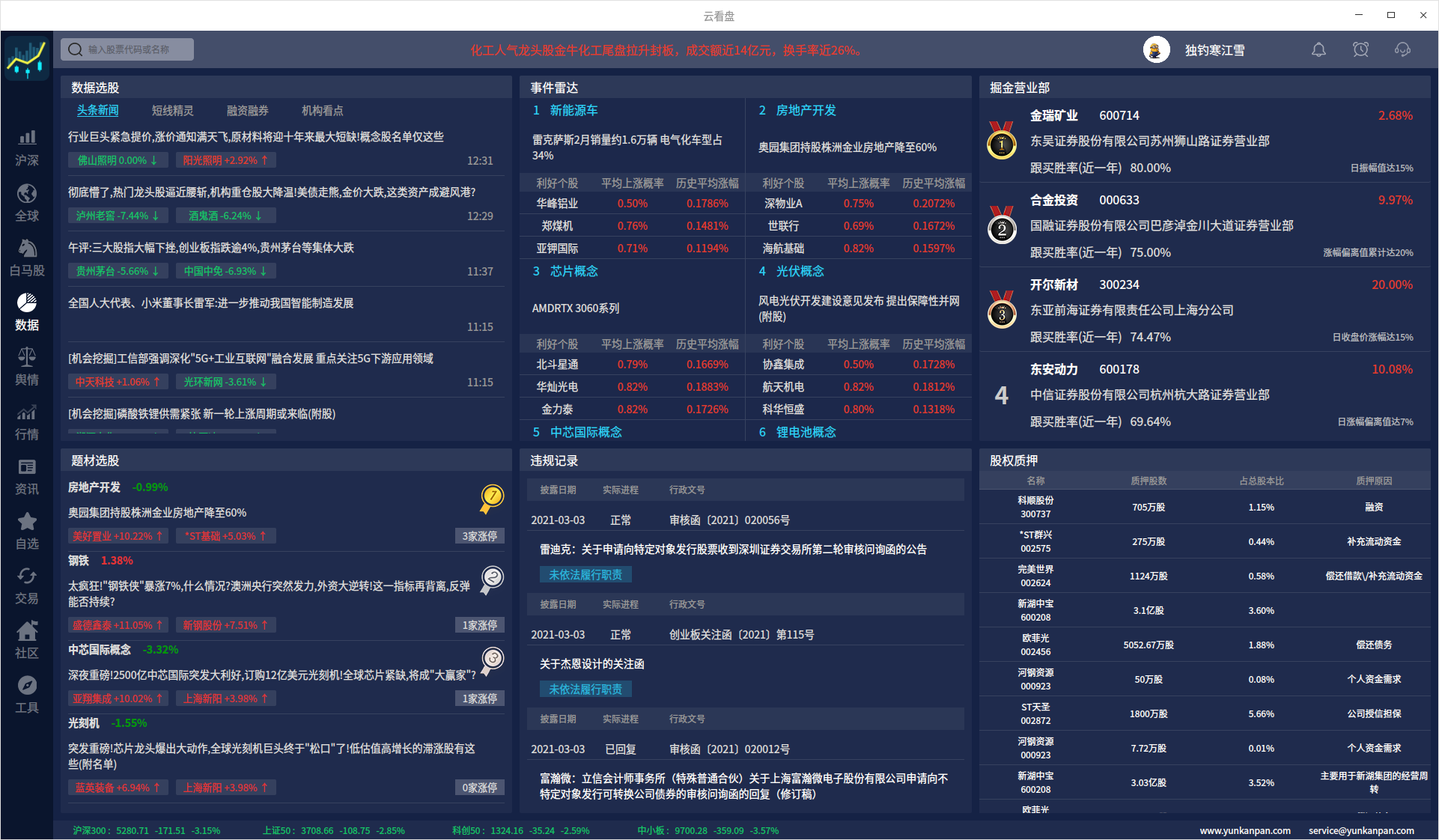 下面的云看盘的几个界面,给人感觉挺用心的,为开发者点赞。