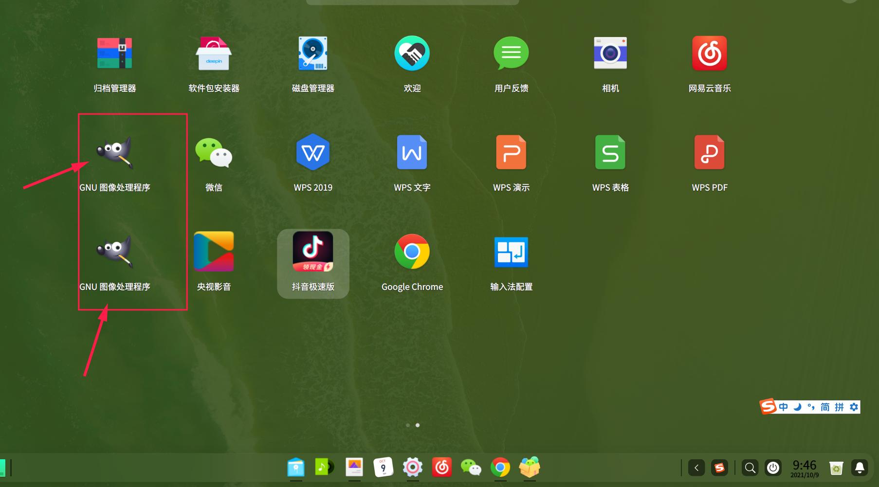 1.启动器菜单上一个程序会显示两个图标