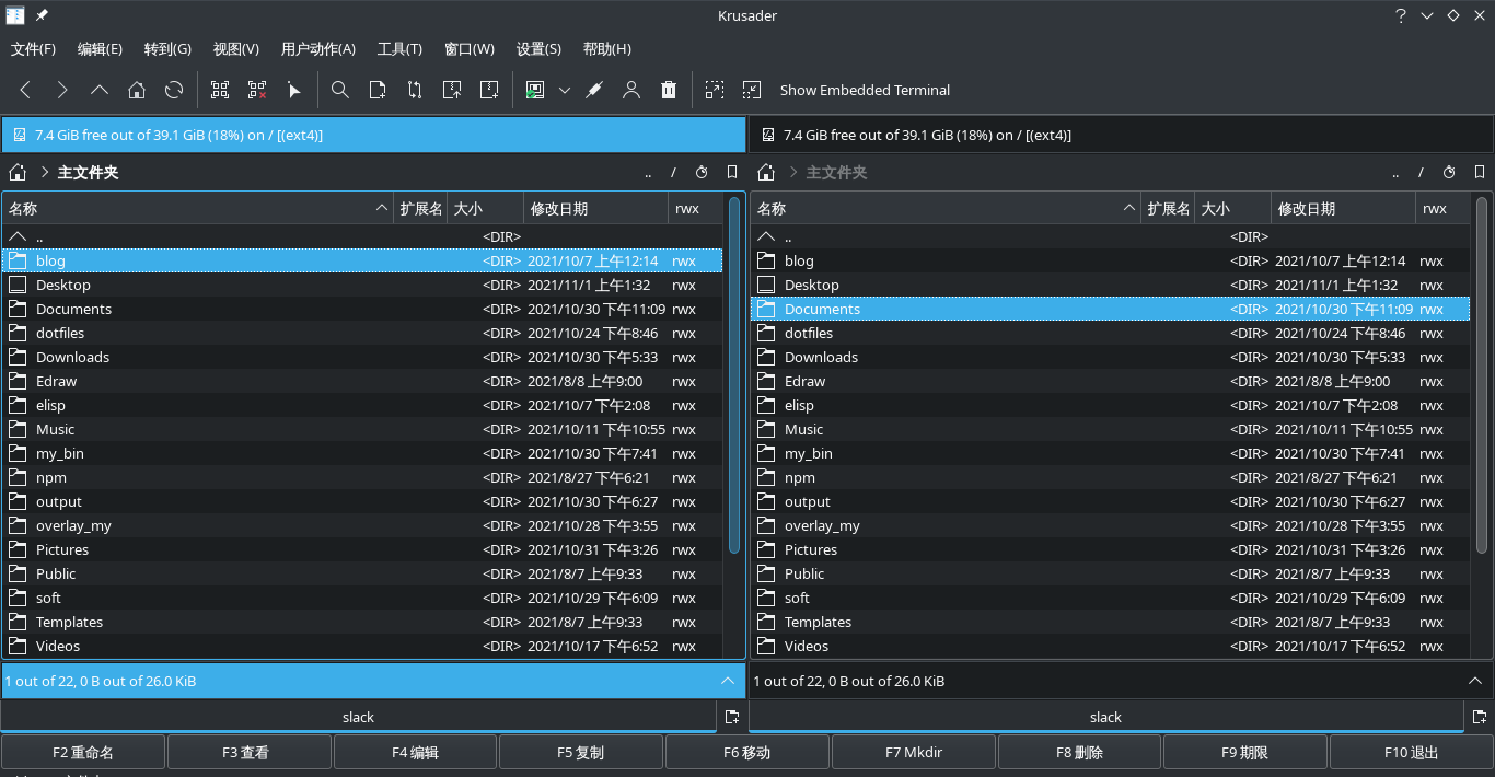 krusader,双栏文件管理器